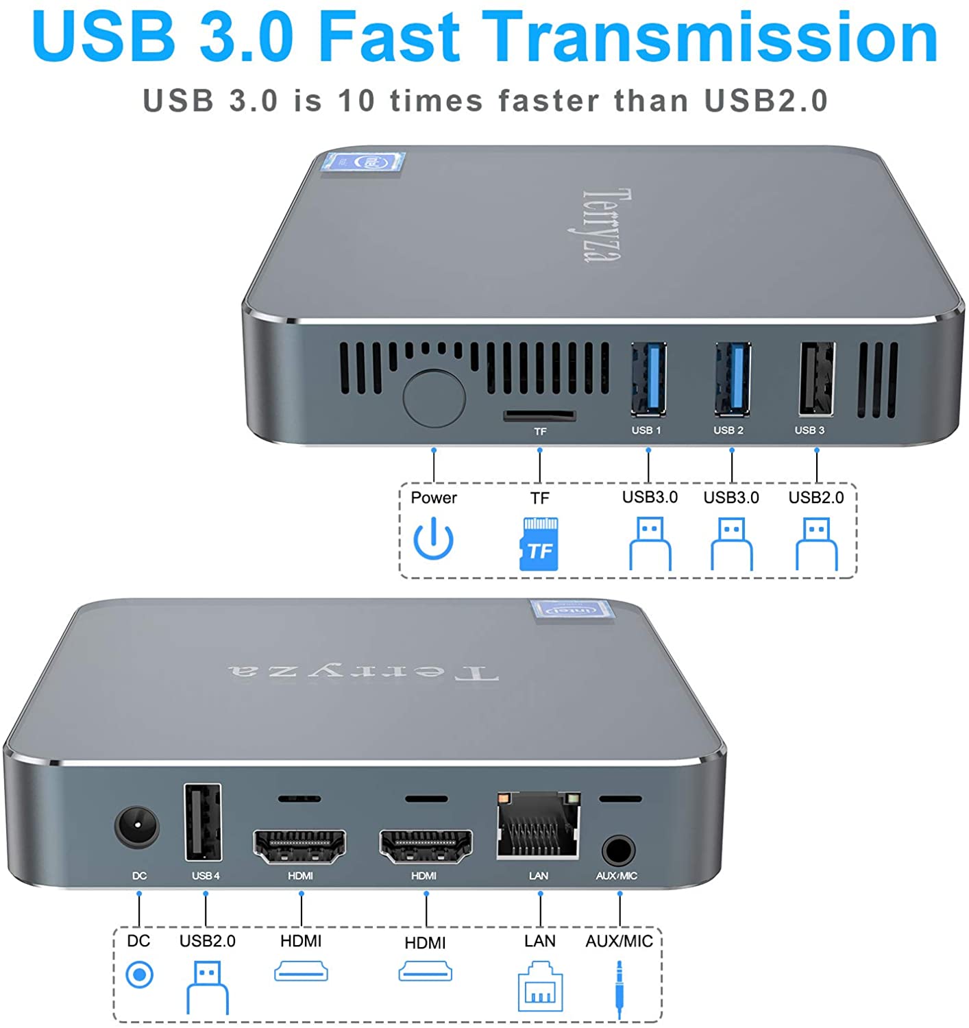 • 【Super Large Storage 】 Mini PC Windows 10 Pro (64 bit) come with 8GB RAM and 128GB mSATA SSD Large Storage, Expand with a Micro SD Card up to 128GB (SD Card not included). It is Powerful and Enough for Daily Usage, Like as View Stock, Email, Browsing, Office Work, Remote Learning, Home Entertainment and even Some Basic 3D Online Gaming etc.